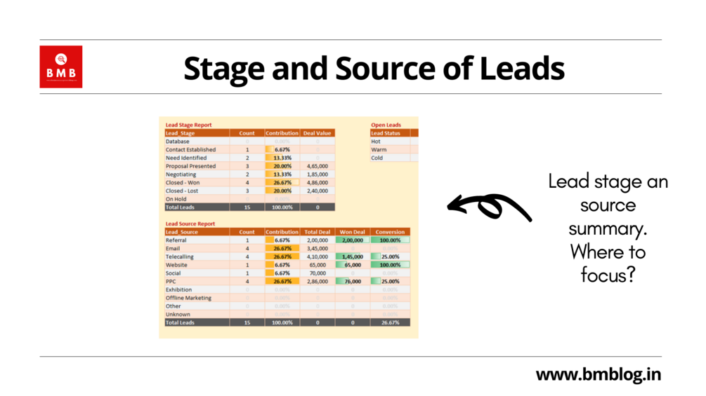 - Monitor staging of leads and time taken to close. Take actions to expedite