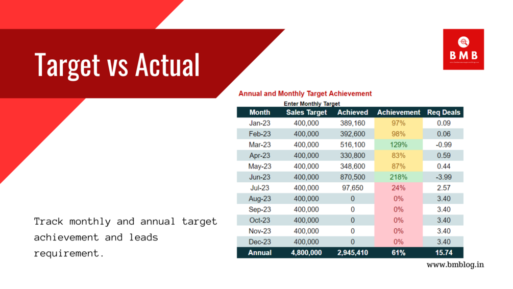 - Plan lead requirement for subsequent months to meet annual sales target.